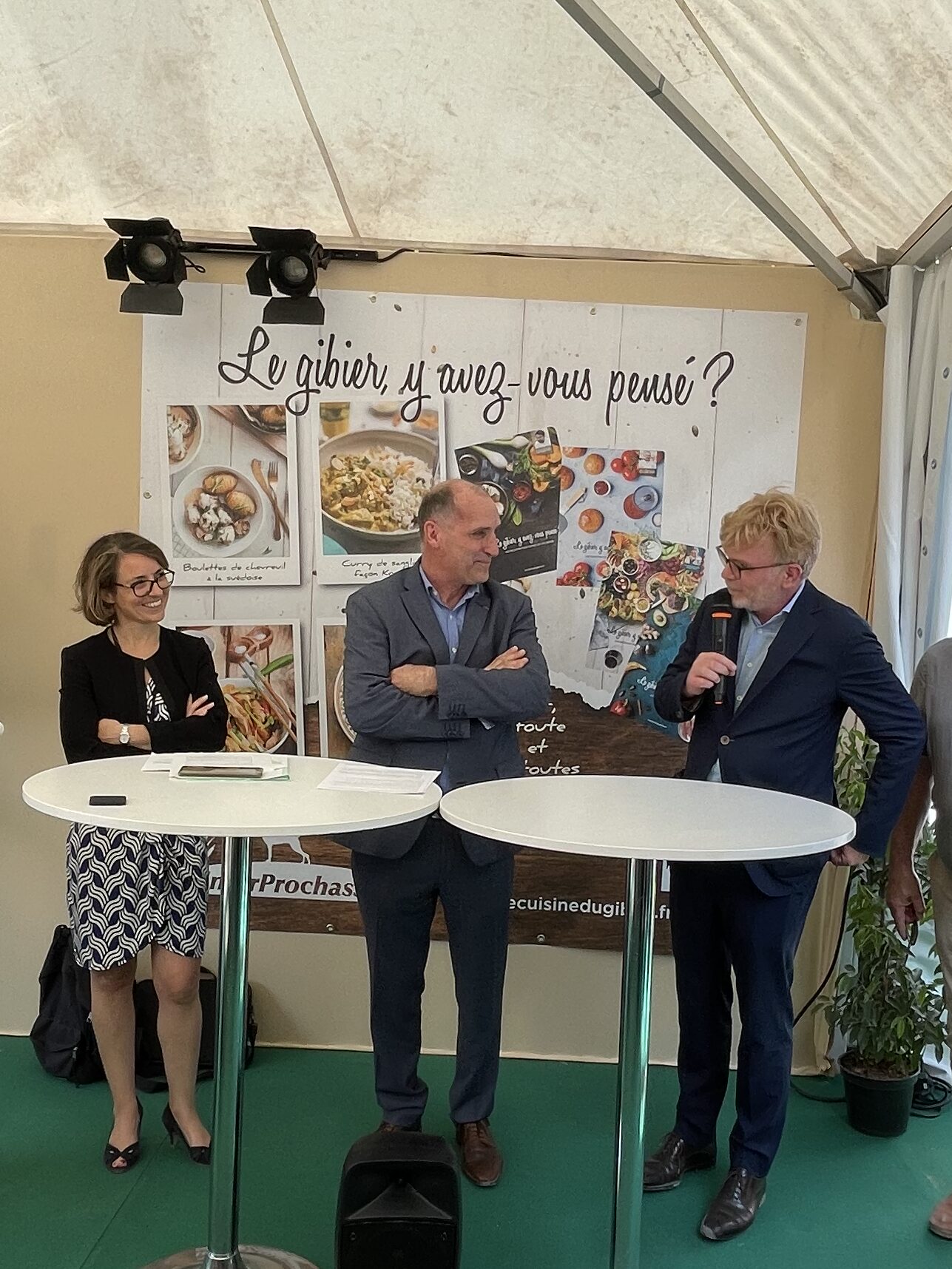 Le stand d’InterProchasse a accueilli une table ronde consacrée à la filière venaison, co-organisée avec Vanessa Hummel-Fourat, sous-directrice en charge de la sécurité sanitaire des aliments (DGAL), et introduite par Marc Fesneau qui nous a fait l’honneur d’ouvrir les échanges. Cette rencontre a réuni des représentants du Ministère de l’Agriculture (DGAL), de fédérations de chasseurs (FICIF, FDC Haute-Marne), d’organisations institutionnelles cynégétiques (InterProchasse, ANCGG, Jeunes Chasseurs), d’entreprises de la filière venaison (NEMROD, l’Atelier du Loup) ainsi que de porteur de projet (ARTEMIS).