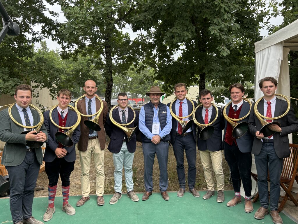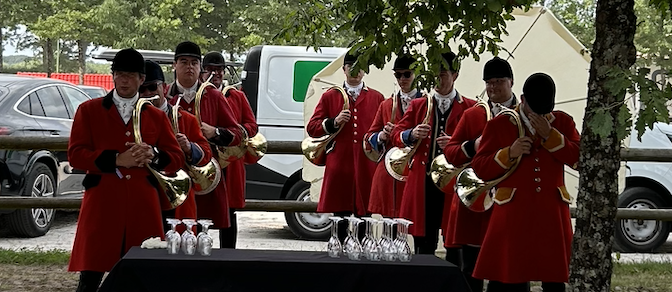 Les sonneurs des fanfares du Plaisir de la Trompe accompagnés par les Jeunes Veneurs, ont fait vibrer les convives au son des cors de chasse, créant un véritable moment d’émotion !